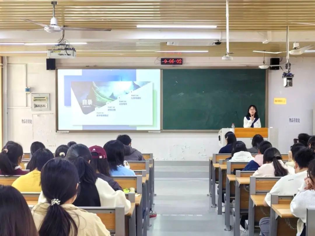 随后,曾至会同学从论文手这一视角出发,为同学们详细阐述了论文写作的四个关键环节。她将自己的参赛经历结合其中,让同学们对论文写作有了更清晰的认识和更明确的方向。