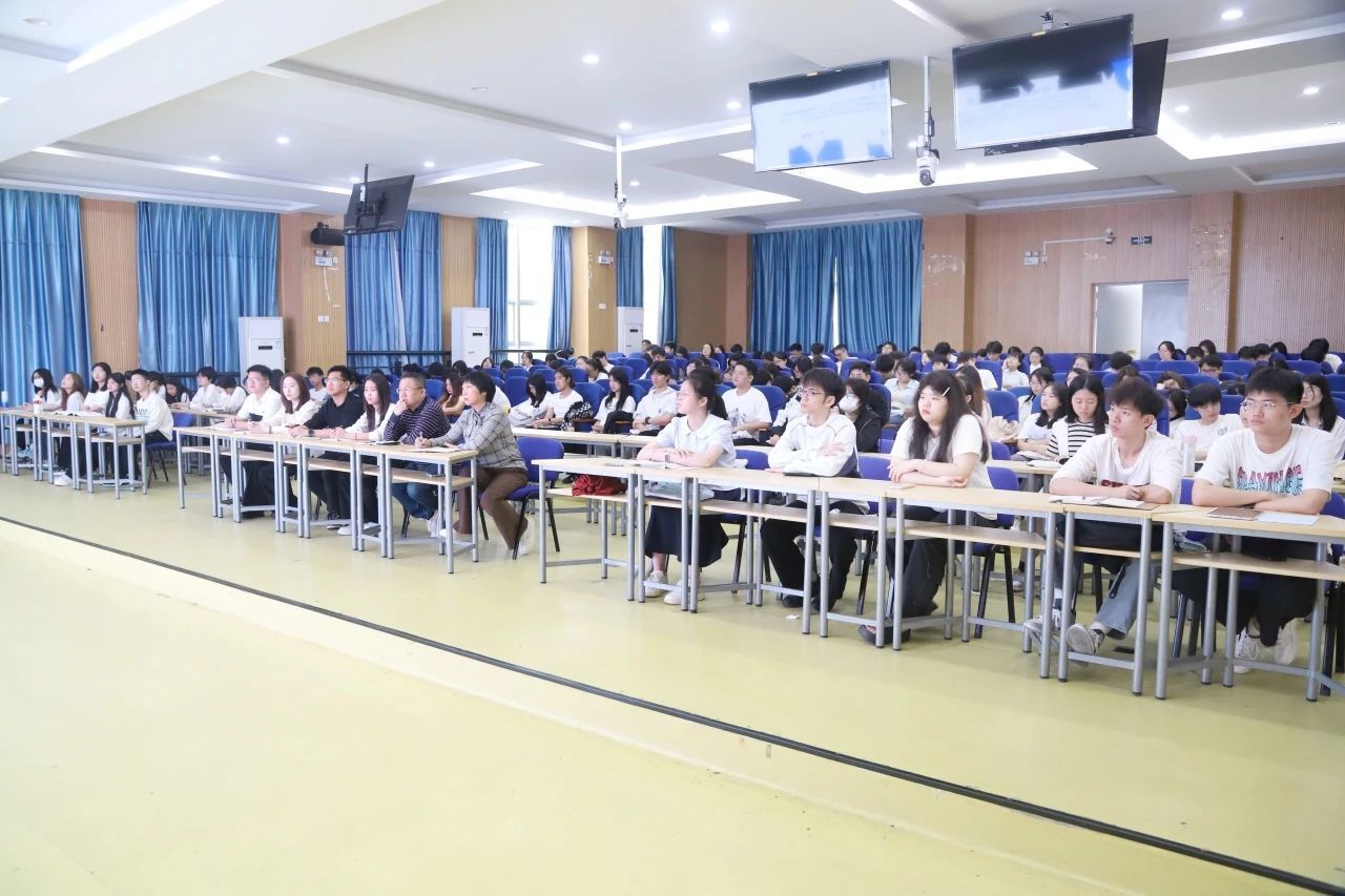 师生讲授形势与政策课。学院党委书记陈晶莹、党委副书记胡海智、各级辅导员及本科生与研究生学生干部参加。