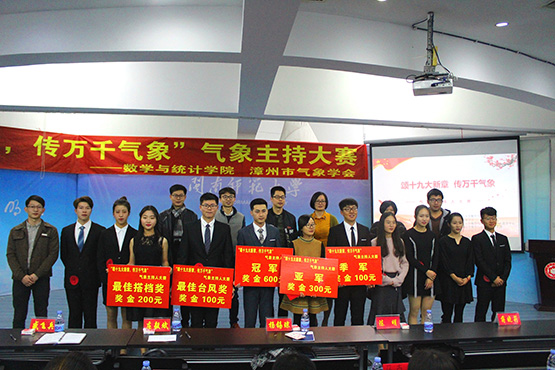 团委联合主办,数统学院艺术团、青年志愿者中心承办的的“颂十九大新章,传万千气象”——气象主持人大赛在达理活动中心三楼报告厅圆满落幕。气象台副台长杨锡琼女士、工程师庄毅斌先生、漳州气象台主持人盛飞兵先生担任本次评委,数统学院团委书记、辅导员、各学院组织代表出席本次活动。
