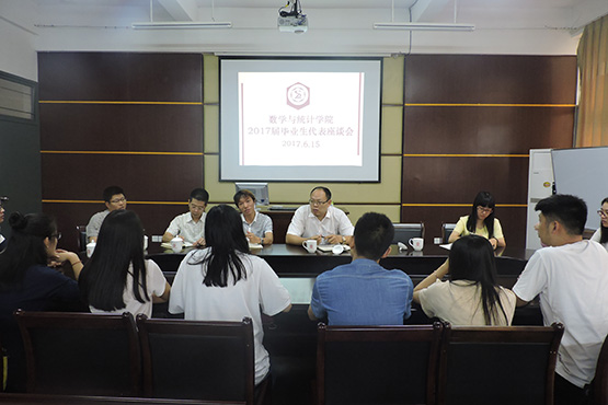 座谈会上,各专业的毕业生代表畅谈自己在校的收获和成长,并结合自己的学习生活经历,对母校的发展提出意见和建议。学院领导及教师听取了同学们关于就业及实习问题、学风建设、课程安排、教学秩序、数学竞赛、奖助贷、校园活动等方面的问题及建议。相关教师对毕业生代表所提出的疑问一一作了详细的解答,黄副院长指出:看到各位毕业生代表能站在学院主人翁的立场,全方面的对学院教学和学生工作提出创造性的建议和意见而感动,看到大家能从教学改革、人才培养等方面直接切入到学院深层的办学理念而感谢;学院将探索新的工作模式和工作方法,更加关注学生的切身利益问题。座谈会的最后,老师对毕业生们提出了殷切的期望,祝愿毕业生们以后的路越走越宽,将学校“博学明理、砺志笃行”的校训融入血液,成为做人做事的原则,发扬到工作岗位上,为学校和学院争光,继续关注学校的发展,常回家看看。