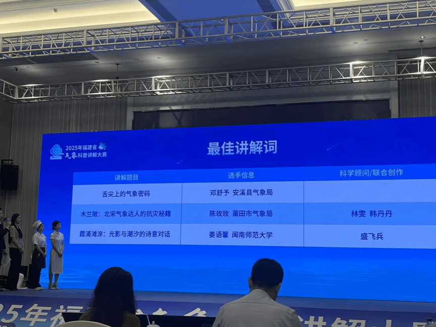 姜语馨将数学与统计学科的数据分析思维融入气象科普,以严谨的逻辑和通俗的语言解读气象现象。其讲解的自主命题《霞浦滩涂:光影与潮汐的诗意对话》兼具科学性与趣味性,通过生动的案例和清晰的框架阐释复杂知识,最终斩获“最佳讲解词”奖项。