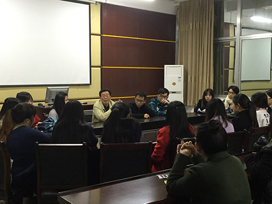 刚结束考研的13级学生及14、15级有意向考研的学生进行座谈,为学生们的考研复试和调剂工作进行了详细指导。