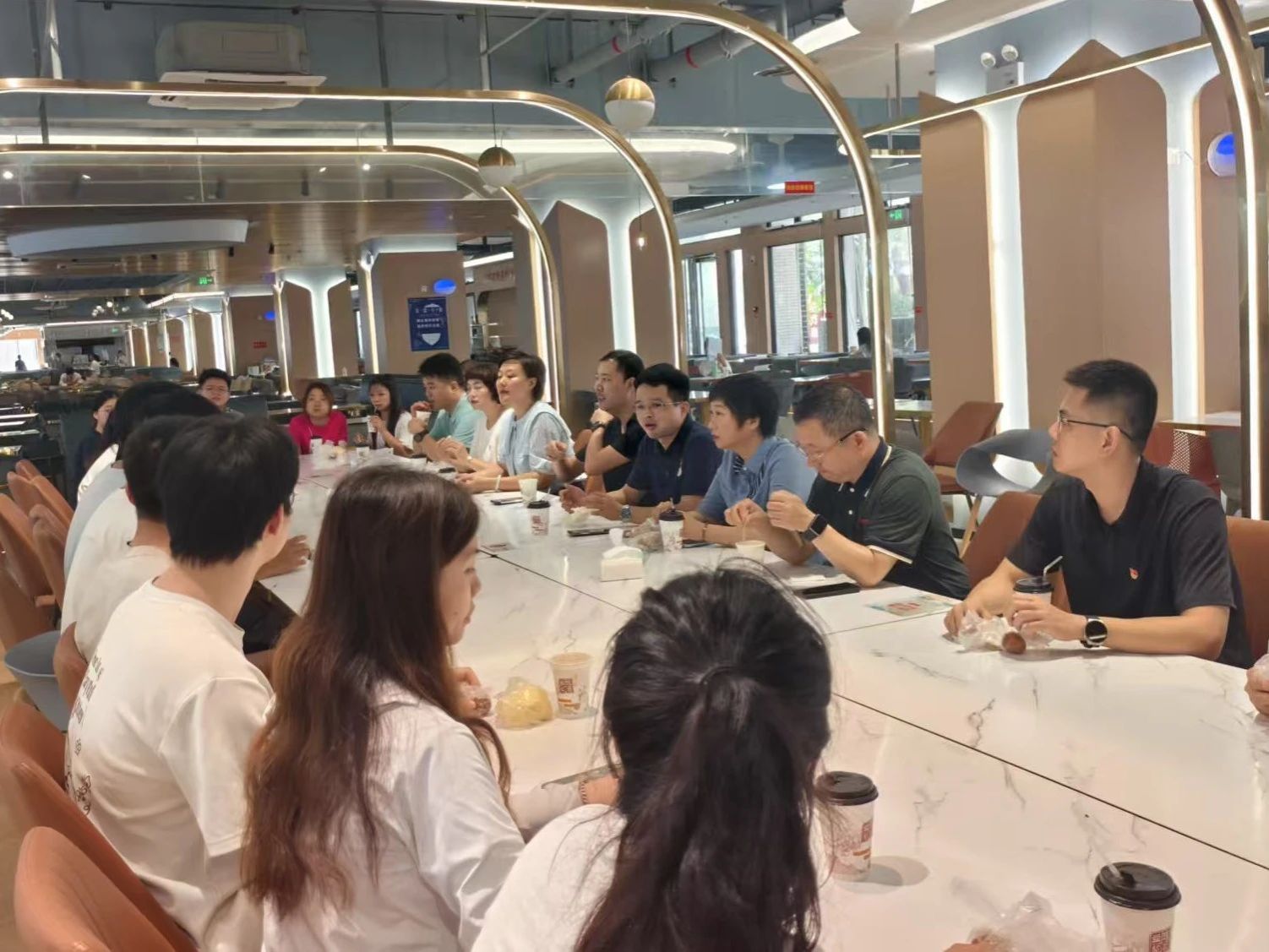 签约仪式后,双方联合开展“π餐计划·暖心早餐会”特色活动。师生党员与学院勤工助学学生围坐共餐,在温馨氛围中展开零距离交流。教师党员悉心听取学生关于食堂管理、宿舍服务、校园环境等方面的意见建议,同时从学业发展、成长规划、职业选择等维度为学生答疑解惑,以“早餐桌”为纽带传递育人温度,让关怀浸润青年心田。