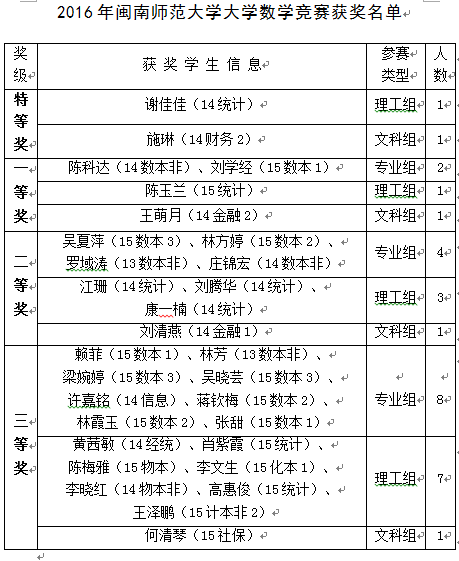 大学数学竞赛试卷评阅、评奖工作已于2016年11月30日结束。针对此次竞赛中成绩特别突出的两位选手,经竞赛组委会讨论决定,特设理工组和文科组特等奖奖项。为严肃竞赛纪律,杜绝不当之风,竞赛组委会决定设立获奖结果争议期,为期7天(2016年12月1-7日)。现将拟获奖名单(见附件)公布如下,公开征求广大师生的意见。