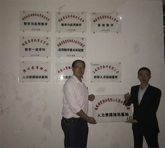 与福能期货于砺志楼举办院企合作揭牌仪式,学院副院长黄韩亮与福能期货股份有限公司漳州营业部总经理林生荣出席仪式并为“人力资源培训基地”揭牌。