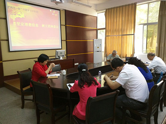 在砺志114会议室召开党委学习扩大会,就“两学一做”专题一“坚定理想信念 增强‘四种意识’”组织学习讨论,学院党委委员、党支部书记、科级干部等参加了学习讨论会。