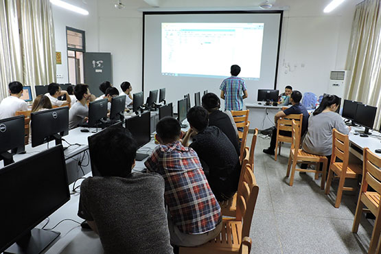 软件开发实训课程第三次培训在砺志楼110教室进行,上海宝宏软件厦门分公司项目总监杨建元先生与项目经理张智鹏先生受邀为受训同学提供专业指导。