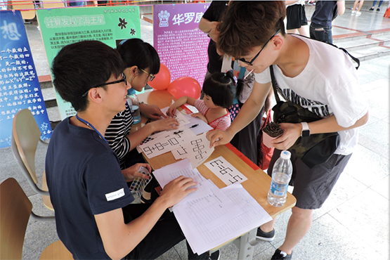 在达理活动中心举行第三届数学嘉年华活动,活动现场一系列跟数学相关的游戏引来了许多老师、同学的关注和热情的参与。
