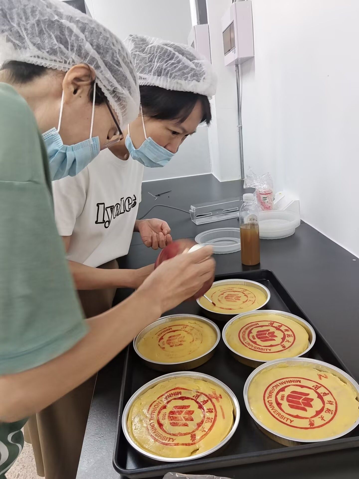 讲解结束后,大家带领着祖国的花朵们,开始分工合作,称材料、揉面团、分馅料、包饼皮、压膜成型。在专业老师的细心指导下,大家每个步骤都有条不紊,活动现场弥漫着轻松愉快的氛围。月饼制作好后,大家将其送入烤箱,等待着自己亲手制作的月饼新鲜出炉。