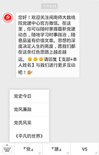 经过认真筹划精心准备,积极推出党员微信公众学习平台“红色思路”,该平台开设了党风廉政、党员风采、党史今日、微热点、微哲文、微励志等特色栏目,每周定期推送相关内容,倡导党员进行有价值的阅读和提升,致力于打造一个能提高党员内在党性修养的思想政治教育平台,也为党组织和党员间提供一个互动交流的及时有效平台。通过这一学习平台的运作,确实解决教师党员理论学习不深入和学生党员入党后续教育不足理论学习不够的难题。