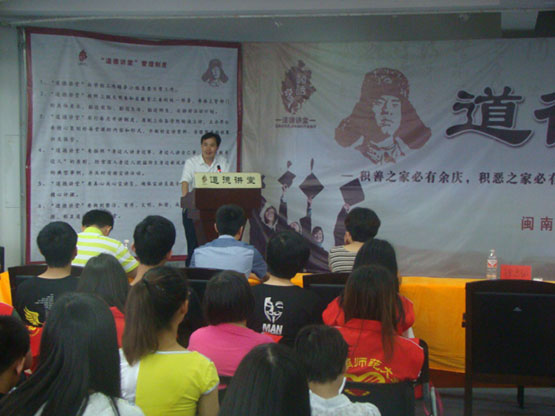 在达理活动中心三楼举行以“八年爱心助教,共筑美丽中国梦”为主题的道德讲堂,芗城区团区委书记傅小林、韩国av