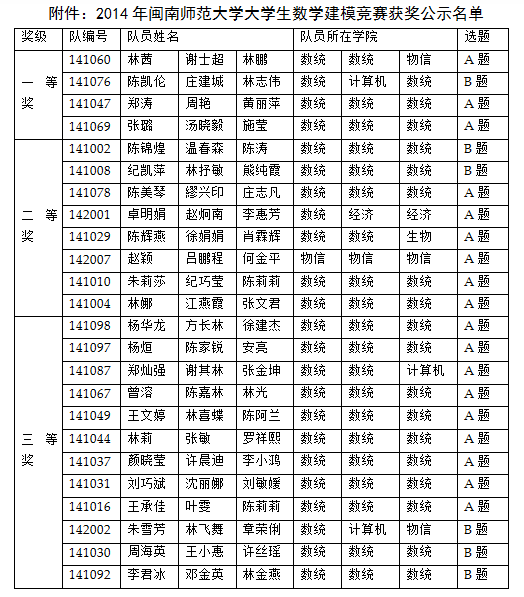 大学生数学建模竞赛评阅工作已于2014年6月13日结束。为严肃竞赛纪律,杜绝不当之风,竞赛组委会决定设立获奖结果争议期,为期5天。现将获奖名单征求异议稿公布如下,公开征求广大师生的意见。