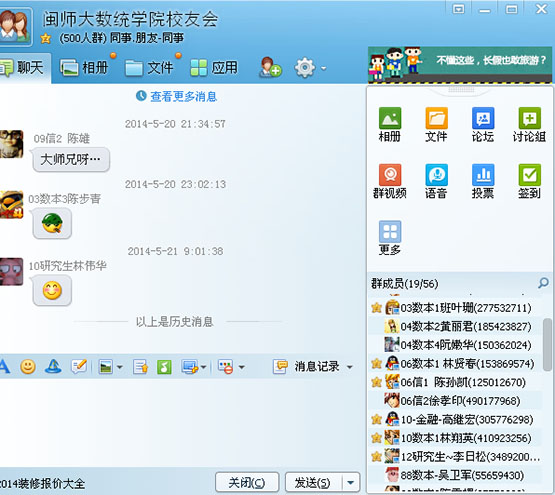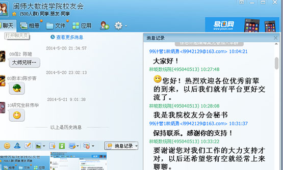 结合群众路线教育实践活动的开展,韩国av 积极拓展服务校友互动平台。建立毕业校友班级理事QQ群,搭建与校友互动交流平台,及时发布学校相关信息,发挥校友资源优势。同时还把校友工作的触角延伸至在校生,培养在校生的母校情怀和校友情结,建立了省外生校友群和福建省内各地区在校生校友群,每个地区各年级都指定一名学生干部负责日常管理,同时与各地校友群有效对接。通过构建立体化的校友交流平台,密切与校友的情感互动交流,拉近与校友的距离,为充分发挥校友资源优势打下良好的基础。
