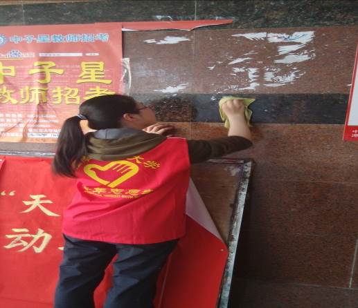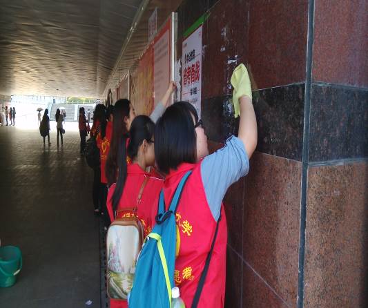 3月19日,13数本1班、13数本3班与13金融班志愿者们在行明隧道进行了校园牛皮癣的清理活动。在志愿者们通力合作下,行明隧道两侧墙壁上因长期粘贴广告留下来的垃圾死角全部都被清理得干干净净。