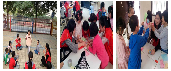 3月27日下午3时,12数本1班志愿者们在师大实验幼儿园内开展“大手牵小手”志愿服务活动。活动期间,同学们带领小朋友们参加折纸花、抬轿子、捏橡皮泥、画鼻子等小游戏。活动中小朋友不仅得到了放松,同时也在游戏中学习到了新的知识和新的乐趣。本次活动获得了师大实验幼儿园老师们的一致肯定,双方确定每周都要开展相关的志愿服务活动。