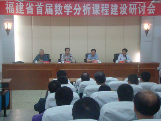 校长李进金教授,教务处处长陈再生教授,福建省数学会理事长、厦门大学数学科学院林亚南教授出席仪式,开幕式由我系主任李克典教授主持,校长李进金教授和理事长林亚南教授分别做了热情洋溢的讲话。随后,来自十五所高校的十八位代表做了大会发言,有的就本校《数学分析》课程教学情况做了介绍,有的交流了《数学分析》课程教学的经验,有的对《数学分析》中的相关问题进行深入的探讨和交流。