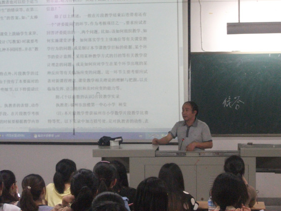 此次讲座使学生对说课及片断教学有了一个全新而形象的认识,增强了我系师范类毕业生招考面试的信心。我系今年223名师范类学生有80%同学进入面试,同时有不少同学取得地区第一名的成绩,相信,通过这场有针对性的讲座辅导,必定能一定程度上增加他们的面试成功率。