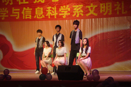 12月3日晚7:00,由数学与信息科学系团委主办、系学生会承办的以“文明在我心,礼仪伴我行”为主题的大型晚会在球类馆隆重举行。系党总支书记徐志怀教授、团委书记林贵东老师、系辅导员老师和全系1000多名同学一起观看晚会。