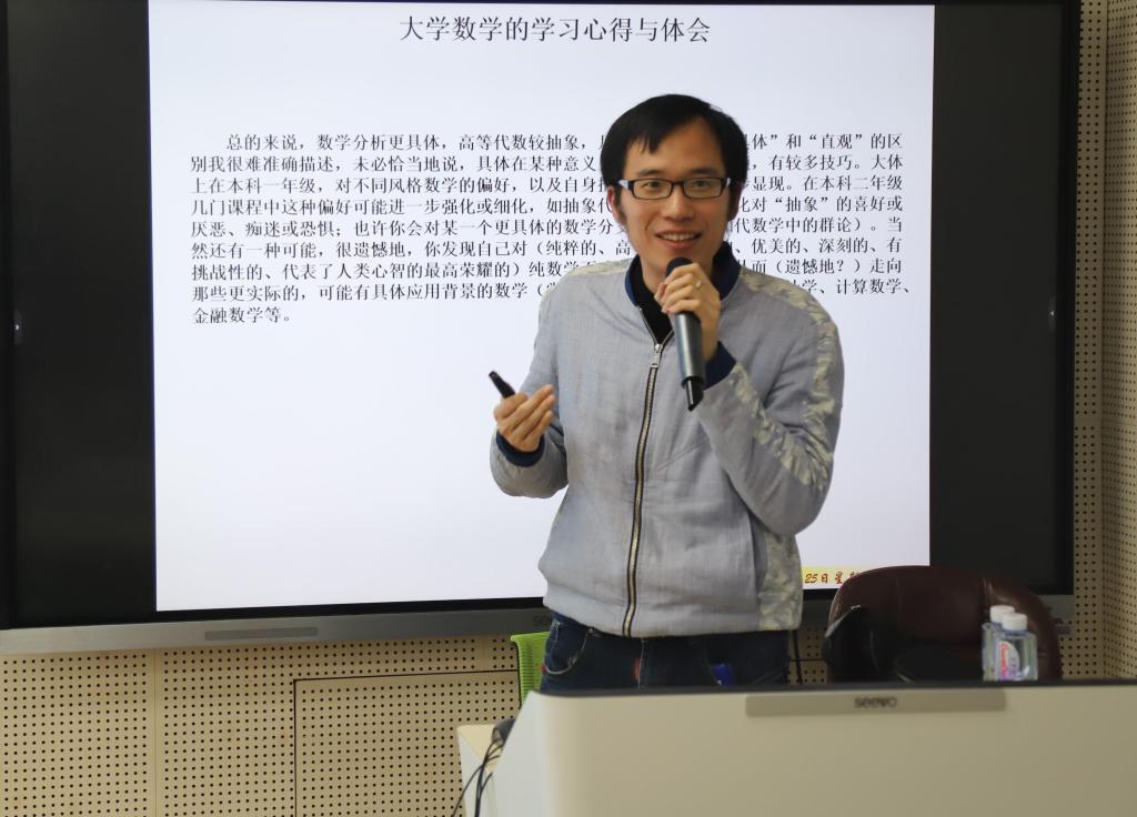 11月25日下午,包文涛于砺志楼131教室为20级卓师班开展《“天行有常,数学有序”关于渐进式数学研究的思考》为主题的讲座。包文涛首先介绍了他所指导的学生取得的优异成绩,分享了如何思考问题来构建数学模型,强调要实地考察,结合社会实践和生态效应。同时为大学数学学习提出了宝贵意见:一是要多看课本,做适量的习题,积累例子重视例子,将抽象的数学具体化;二是鼓励学生上课做笔记,将数学“熟悉化”;三是希望同学们合理地安排生活和课余活动,但要以学习为主。结束时,包文涛表达了对大学期间教授他的每一位老师诚挚的谢意,感谢他们教与自己学识与思维。