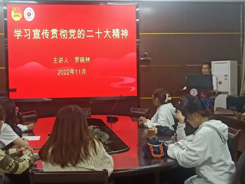 最后,罗晓林老师部署全院学生组织、团支部、学生团干学习宣传贯彻党的二十大精神的工作。罗晓林老师提出,各组织、各班级在今后工作中要吃透精神实质,以高度的政治自觉推动学习贯彻党的二十大精神的热潮。
