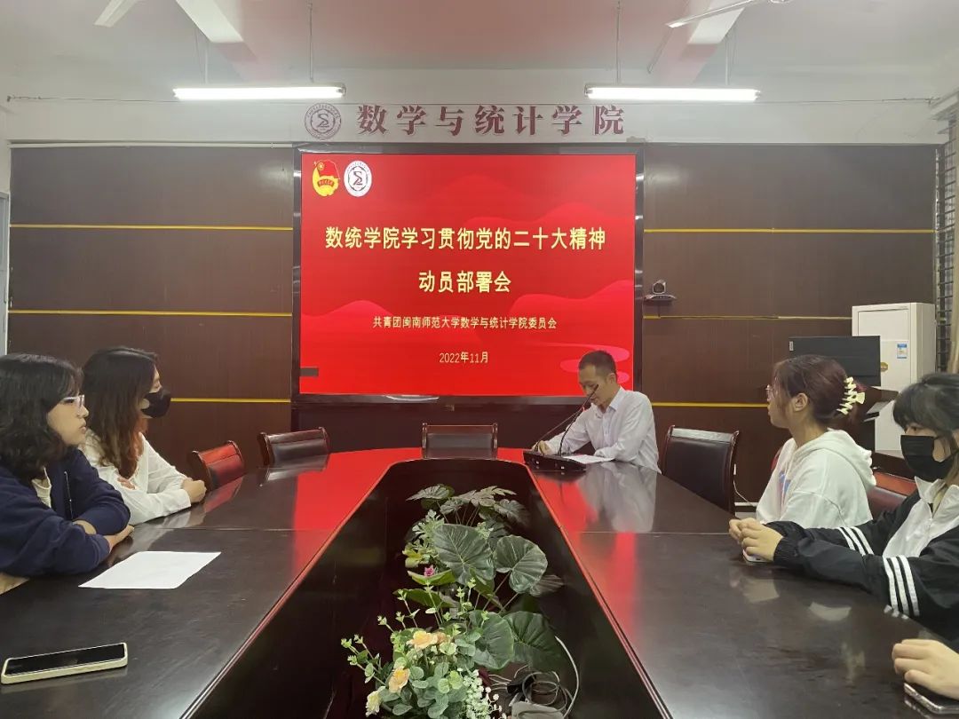 11月3日下午,数统学院团委在砺志楼114会议室召开专题会议,学习宣传贯彻党的二十大精神,学院各组织主要学生干部、各团支部书记参加会议。会议主要有两个议程,一是由罗晓林老师主讲二十大报告中关于教育部分的新内容新提法,二是部署全院学生组织、团支部、学生团干学习宣传贯彻党的二十大精神工作。
