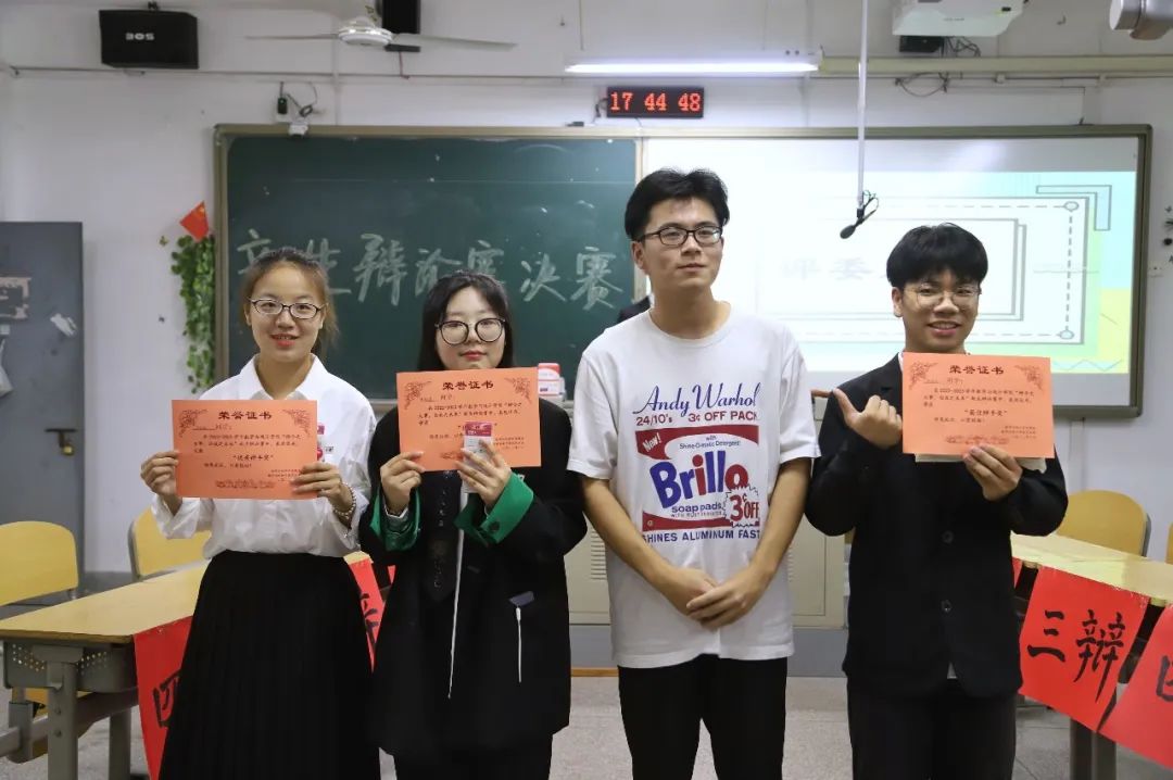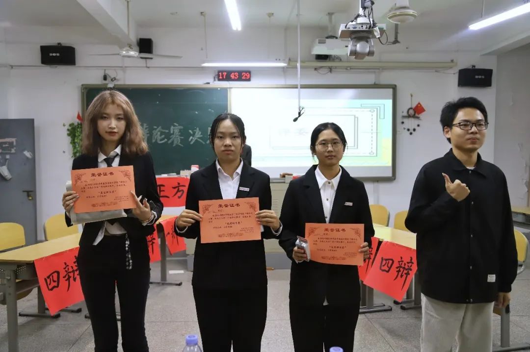 经过激烈而又刺激的角逐,22级数本四班荣获一等奖,22级数本三班荣获二等奖,22级数本一班荣获三等奖,其中22级数本三班的刘含菲荣获“最佳辩手”的称号,22级数本四班的王思琪、顾王逸荣获“优秀辩手”的称号。个赛中邢伟杰荣获“最佳辩手”的称号,曹雅雯、卢石欣荣获“优秀辩手”的称号。
