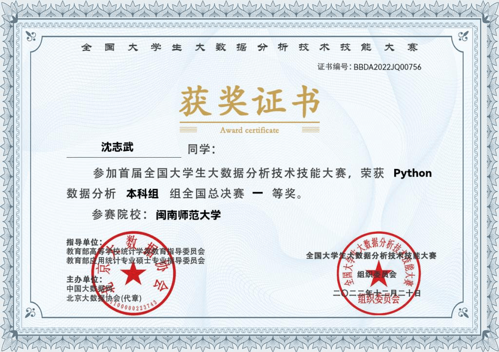 全国大学生大数据分析技术技能大赛是由教育部高等学校统计学类教育指导委员会、教育部应用统计专业硕士专业指导委员会指导,由北京大数据协会、中国大数据网主办的全国性专业赛事,分为Excel数据分析和Python数据分析两个赛项,设省级赛和全国赛。