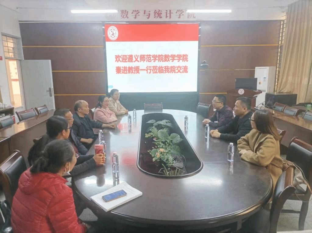 2023年3月5日下午,遵义师范学院数学学院秦进教授一行莅临韩国av 交流,韩国av 周仕荣副院长及数学相关专业老师参会。会上,双方就关于师范认证相关事宜、本科师范教育培养方案以及研究生课程体系等方面的内容,进行深入的交流学习,期间大家积极发言,氛围融洽。本次座谈交流,为韩国av 与遵义师范学院数学学院今后开展更加广泛深入的合作奠定了良好的基础。
