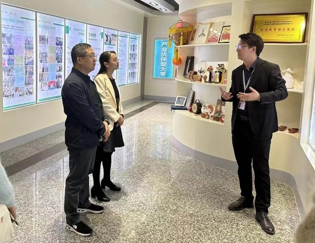 政工干部参观了泉州职业技术大学校史馆,从历史沿革、办学理念、办学特色、生态校园、科研平台、就业创业、优秀校友等方面了解泉州职业技术大学基本情况。