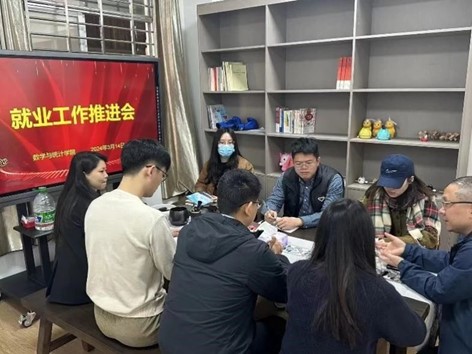 于砺志楼110召开2024届毕业生就业工作推进会。数统学院党委副书记胡海智与全体辅导员参加会议。