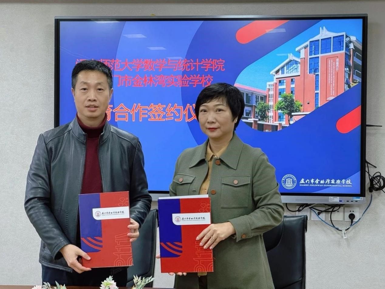 签约仪式开始前,陈晶莹书记向湖里区教育局叶泽军副局长、金林湾实验学校杨单女校长及其他老师,介绍了数统学院的发展历程、办学定位、师范生培养计划以及教育教学研究等方面的情况。随后,双方就学生实习、毕业生就业、今后的学术交流,以及建立常态化交流互动机制等方面进行了深入探讨,旨在实现互惠共赢、共同发展的目标。最后,双方举行了实习基地的共建签约及授牌仪式。