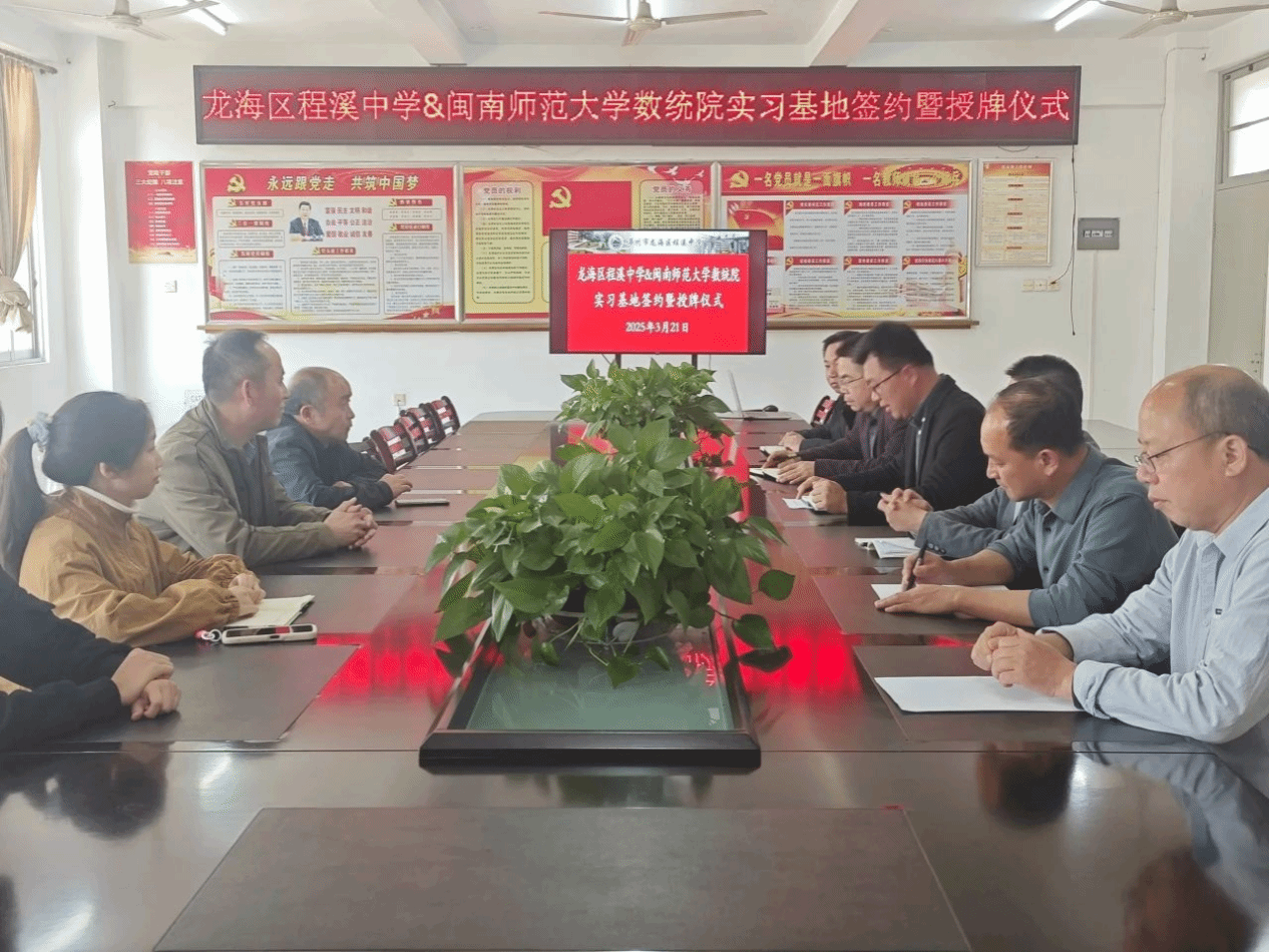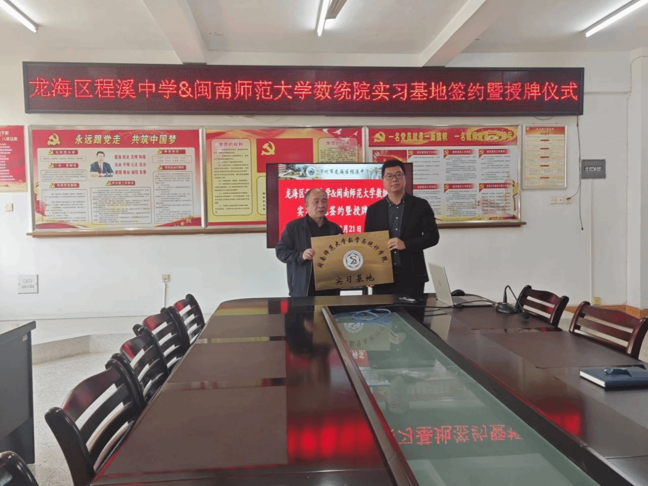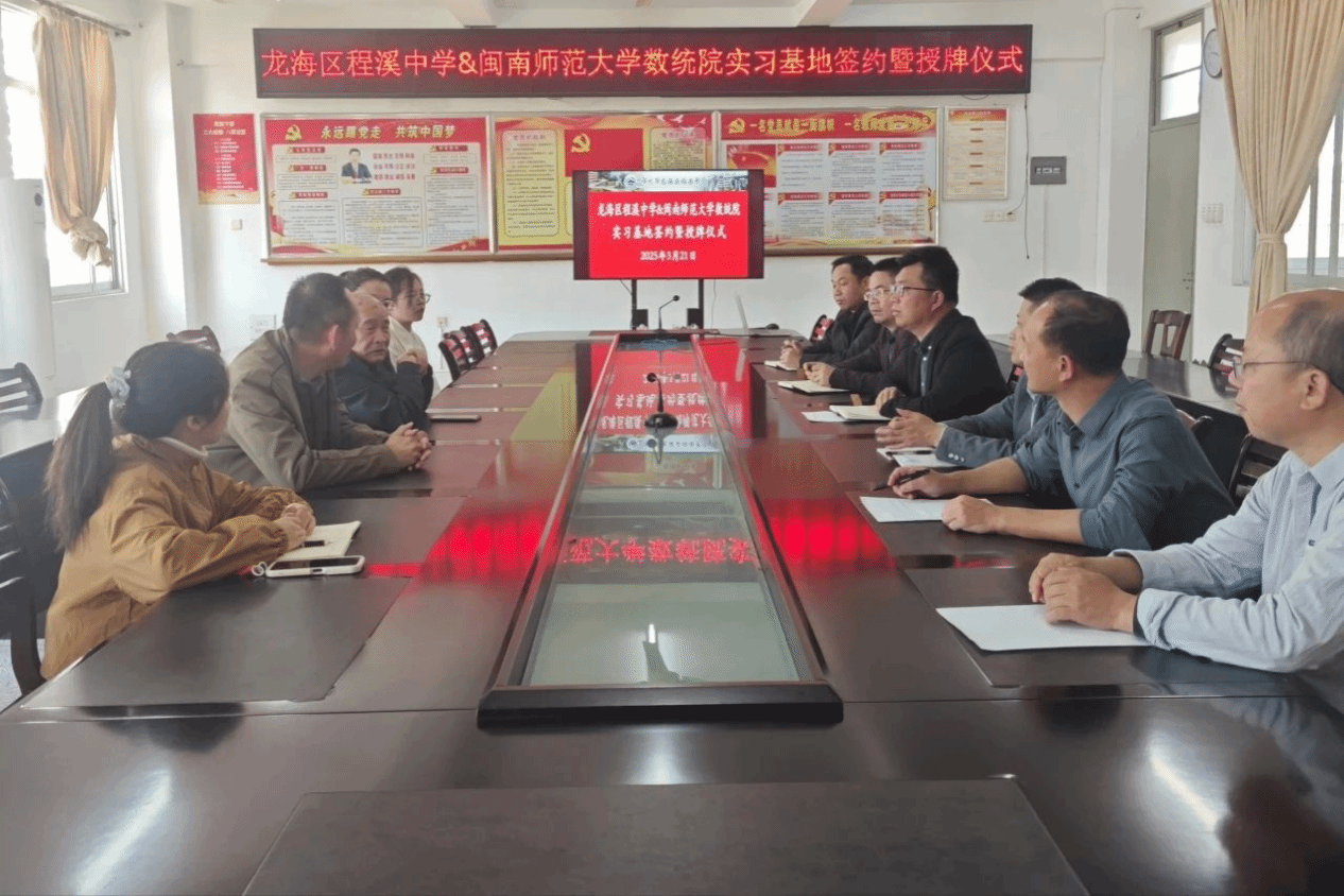 副院长周仕荣,分析教研室主任李长清,代表学院前往程溪中学举行实习基地签约暨授牌仪式。程溪中学校长卢建斌、副校长谢椿盛、教研室主任王友祥、副主任谢艺鹏等老师,以及本院22级部分实习生参与活动。本次仪式由程溪中学校长卢建斌主持。