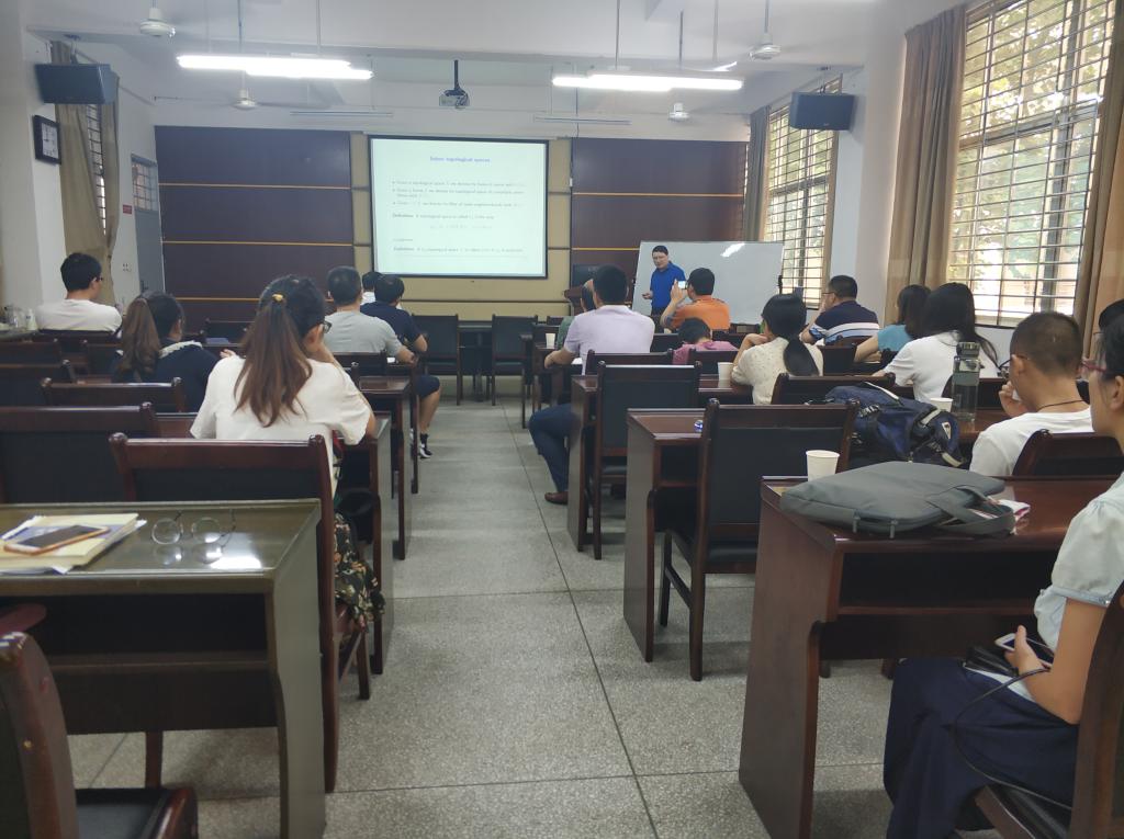 会议期间,宋延奎、牟磊、彭良雪、徐晓泉、林寿、刘川、葛英等专家分别作了题为“Star covering properties in pseudocompact spaces”、“拓扑空间的对角线”、“R-factorizable, simply R-factorizableparatopological groups and their quotients”、 “关于sober空间及其相关空间研究最新进展”、“Compact-covering and 1-sequence-covering images ofmetric spaces”及“Point-regular covers and sequence-covering compact mappings”、“Generalized metric properties on hyperspaces”、“Some questions around attribution functions and skill multi-maps”等21场学术报告。与会代表交流拓扑学及其应用的相关成果,并对相关问题进行深入的探讨。本次论坛对于引导年轻的拓扑学工作者进入学科前沿、提升我国拓扑学及其应用的研究水平具有重要的意义,同时对学院教师从事科学研究起着良好的推动作用。