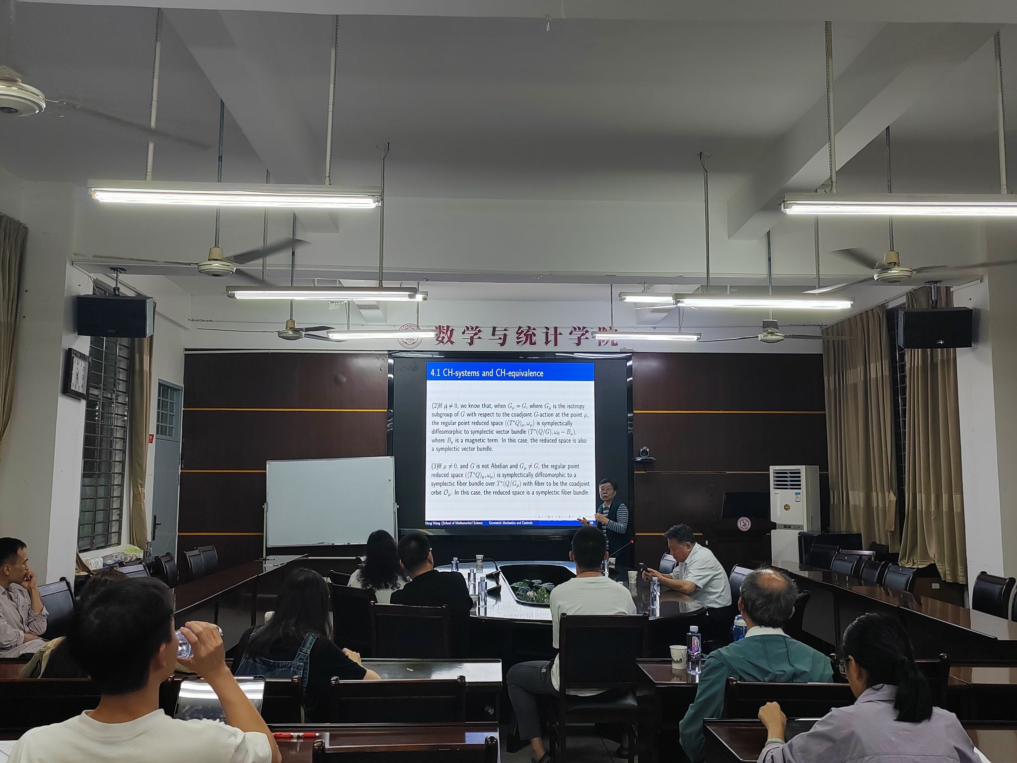 邀请,11月11日下午南开大学王红教授在砺志楼114作了题为《Geometric Mechanics and Controls》的报告。相关师生聆听了此次报告,报告由吴晓霞老师主持。