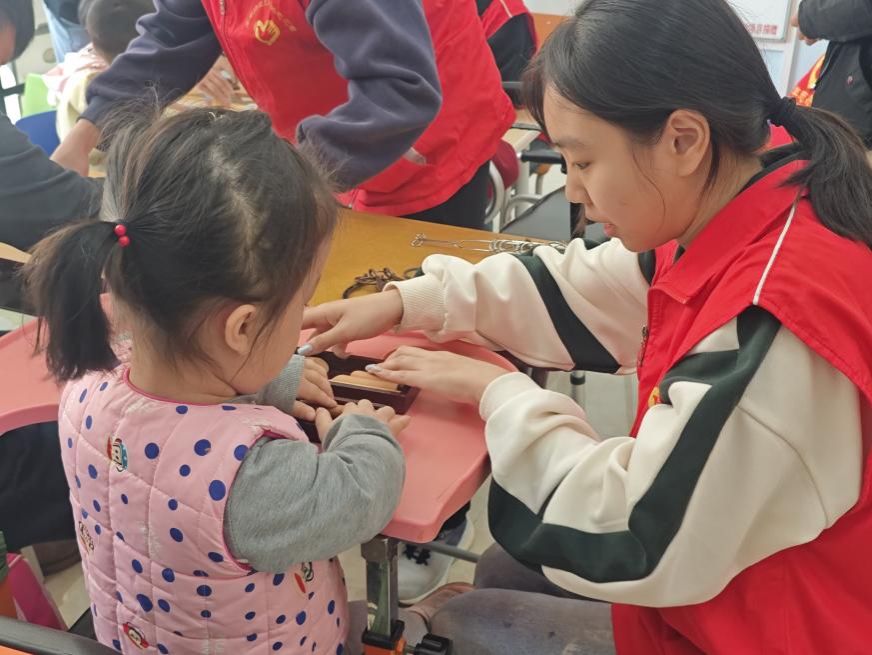 在志愿者的陪伴下,孩子们兴致勃勃地挑战九连环、鲁班锁及旋转棋等益智教具,展现出浓厚的兴趣和无限的创造力。老人们则围坐在一起,认真研究魔方解法,互相交流经验,仿佛回到了童年时光。“看到孩子们和老人们玩得开心,脸上洋溢着笑容,我感到特别欣慰。”学院志愿者表示,“希望通过我们的努力,能够为他们带来一些快乐和融融暖意。”