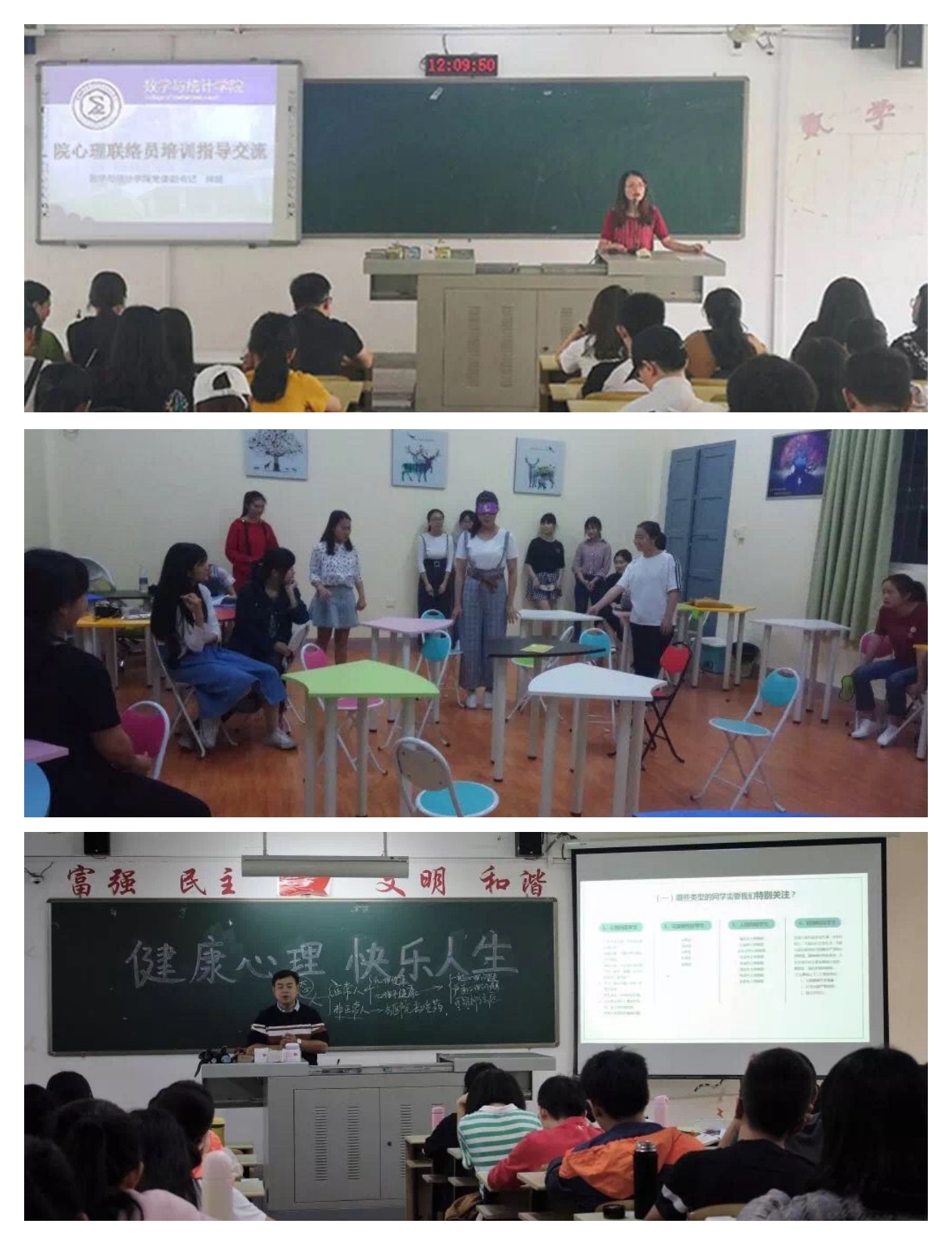 通过开展心理健康教育宣传月、心理健康专家讲座、朋辈培训、宿舍心理信息员培训、5•25心理健康节、心理知识竞赛、心理剧比赛、心理素质拓展游园会、心理健康测试、心理电影赏析、心理沙龙、线上“心灵疫站”、心理咨询志愿者等活动,精准摸排、精准对接、精准疏导、精准预防,精准关爱学生心理健康状况,让同学们了解自己,了解心理,爱自己,并将这份爱传递给他人,切实构建“心理育人质量提升体系”,进而培育学生理性平和、积极向上的健康心态,促进学生心理健康素质与思想道德素质、科学文化素质协调发展。