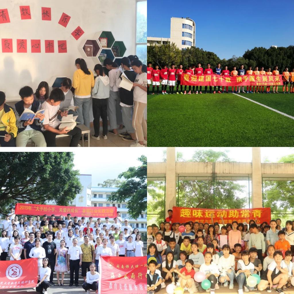 学院以“1+3”创建“志愿服务型”平台推进学生志愿服务工作建设,打造“人人志愿+”格局,勉励广大数统青年“既要向书本学习,也要向实践学习”,帮助学生通过志愿服务将个人抱负、理想融入到民族复兴的伟大事业之中。一是以数学师范特色为重心,打造“常青数·快乐学”志愿服务品牌。通过“常青数·快乐学”爱心助教活动,促进学生在志愿服务中达到教学育人和服务社会的统一。在项目运作上,“常青数·快乐学”紧紧围绕社区“常青数·快乐学”爱心助教志愿服务项目、“大手拉小手”爱心助教志愿服务项目、漳州一中“周末藏生有约”爱心助教志愿服务项目三个重点子项目全面开展;二是明确三个方向:在横向上推进志愿服务平台共建,全面提升校内外协同育人。“延伸带动,拓展平台”构建校地志愿服务共建典范。学院与漳州市气象局、漳州一中、芗城区团区委等联手共建青年志愿者服务基地,拓展服务的覆盖面,建立资源共享平台,提升服务社会的效益。通过校地合作共建平台,一方面使得志愿服务项目在资源共享平台上获取到更多更精准的社区义务服务对象;另一方面,从地方平台获取到长期稳定的高素质志愿者服务团队培训,为学院志愿服务开展延续性的活动提供了智力和人力上的保障,实现了真正的校地合作共赢;在纵向上推进志愿服务平台纵深发展,强化学生志愿服务意识。学院通过打造“志愿服务平台+党建”、“志愿服务平台+社团”、“志愿服务平台+宿舍”,不断强化基层党组织、班团、学生社团、宿舍等组织志愿服务育人作用,让学生在自我教育、自我管理、自我服务中不断成长成才;在时效上聚焦志愿服务机制良性循环,提升实践育人实效。学院目前已建成立体循环的志愿服务体系,产生了多元、正面的社会效益和经济效益:传承了志愿服务精神内涵,并通过志愿服务不计回报的精神影响着受助学生,树立了数统学子乐于奉献的形象,与此同时,也进一步提升了志愿者的师范生技能。志愿者们为了提升教学效果,不断研究改进爱心助教的方法,使得教师职业技能得到了比较系统的训练和提升。