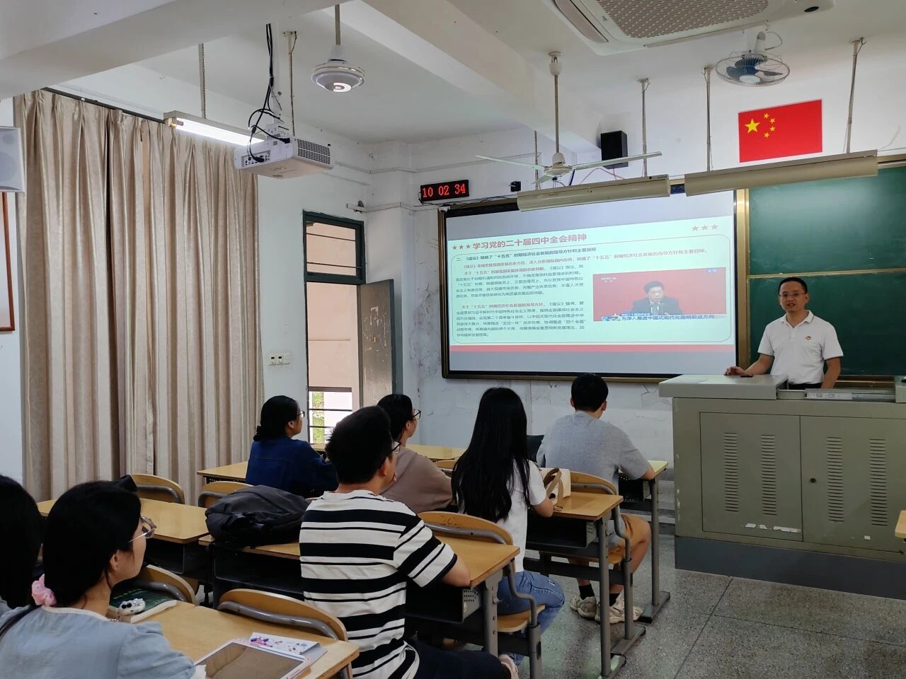 学院各师生党支部紧扣“学深悟透、学以致用”目标,构建“教师支部带学生支部”的联动学习格局,以“三会一课”、主题党日为载体,通过师生支部联动、学科知识赋能,将党的二十届四中全会精神学习与学科特色、教学科研、师生成长发展深度融合,将党的二十届四中全会精神真正融入课堂、深入头脑。