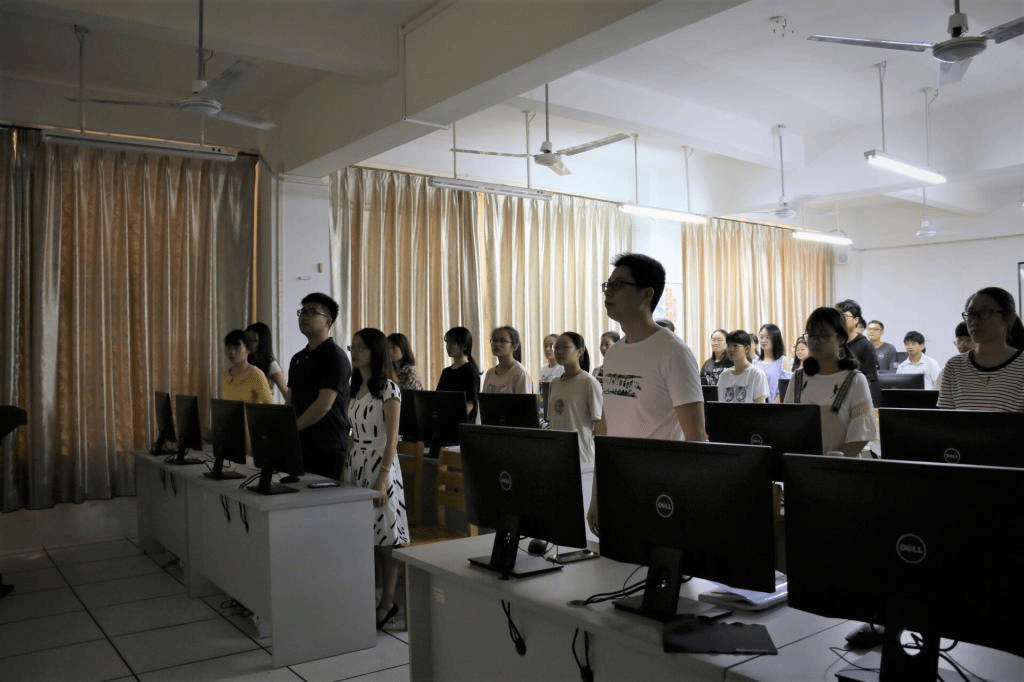 师生在砺志楼110收听收看直播,认真学习习近平总书记在大会上的重要讲话。
