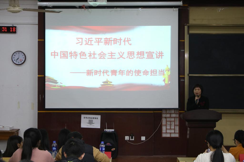 学生坚定理想信念,志存高远,脚踏实地,勇做时代弄潮儿。12月27日下午,院党委书记陈晶莹在砺志楼120,作“学习习近平新时代中国特色社会主义思想”宣讲活动。