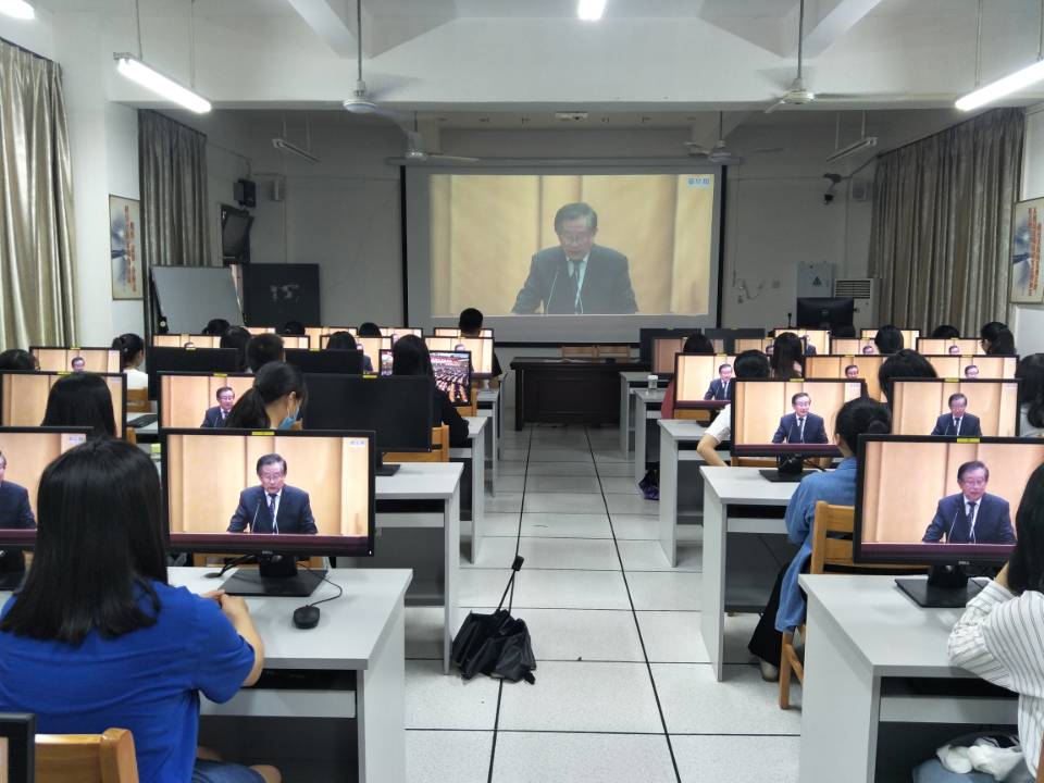 在砺志楼110组织师生收看2018年全国科学道德和学风建设宣讲教育报告会。