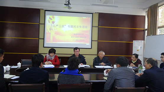 在砺志楼114召开“三严三实”专题民主生活会,肖庆伟副校长应邀出席,参加会议的有学院党政领导、党委委员、教工支部书记、工会代表、民主党派和青年教师代表等。
