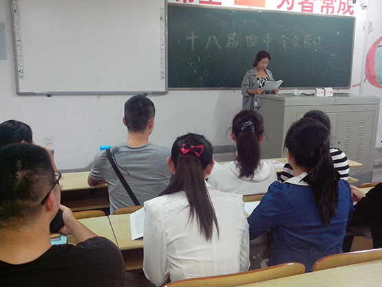 学生党建中心积极策划,通过“线上、线下”两条渠道多种载体广泛组织学生党员及入党积极分子开展学习讨论活动,营造了良好的理论学习氛围。通过“数统学院学生党建中心”微博平台及时转载《中共中央关于全面推进依法治国重大问题的决定》,借助网络平台开展了激烈的微博互动讨论。11月2日,学院分党校借助培训的有利时机,及时组织第七期全体学员以小组为单位广泛开展学习党的十八届四中全会精神活动,各组通过PPT展示、报告、辩论、心得体会交流等形式深入学习了十八届四中全会精神,加深了对依法治国的进一步理解。同时,还组织下班党员、下宿舍党员以班级和宿舍党章理论学习小组为阵地,带领学生掀起学习党的十八届四中全会精神的热潮,引导学生紧跟时事,把自己的人生梦与构建中国特色社会主义法治社会紧密结合起来。