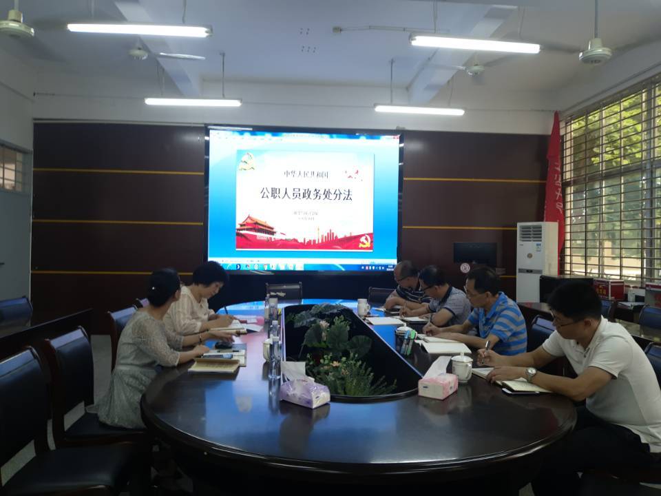 10月6日上午,在砺志楼114会议室,院党委理论学习中心组召开会议,学习《中华人民共和国公职人员政务处分法》。会上,院党委书记陈晶莹深入阐述了《政务处分法》制定的背景和意义,系统解读了《政务处分法》的主要内容,结合典型案例“以案说法”,阐述法律内涵,传递法治精神,并就切实抓好《政务处分法》贯彻执行提出三点要求,一是要坚决扛起政治责任,把“严”的主基调坚持下去;二是要加强对教职工教育,增强遵法、守法、用法意识;三是要坚持执法必严、违法必究,发挥法规制度标本兼治的作用。