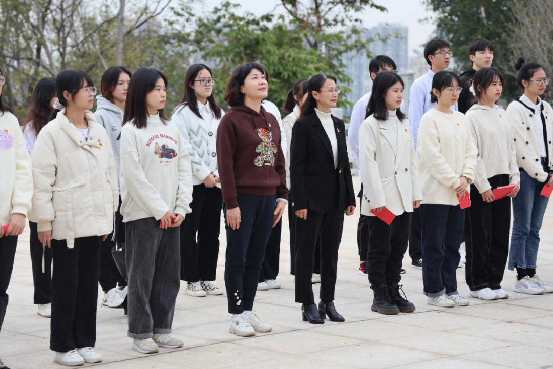 学生第一党支部联合学院19级部分入党积极分子于12月24日在漳州南山红色文化园开展“缅怀英雄先烈,赓续红色血脉”主题党日活动。对接支部领导—校党委组织部部长陈超、学院党委副书记林晓应邀参加活动。