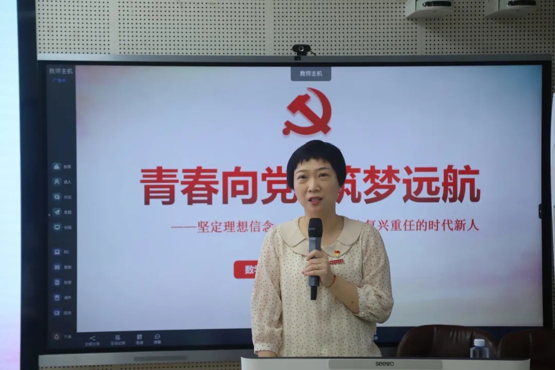 党委书记陈晶莹于砺志楼131为毕业生党员召开以“青春向党,筑梦远航--坚定理想信念,争做堪当民族复兴重任的时代新人”为主题的专题党课。