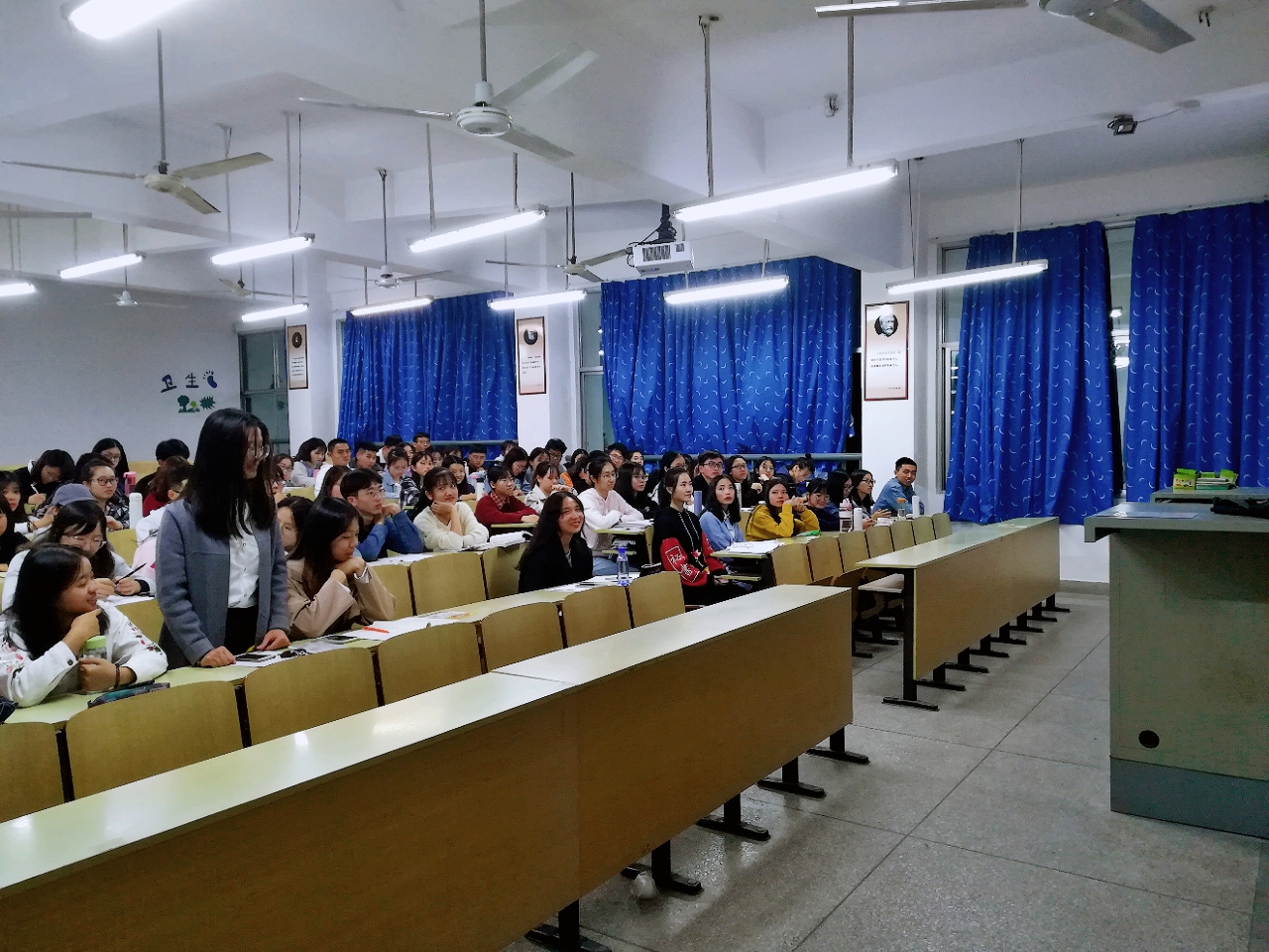 课上,蒋晓莉与入党积极分子积极互动探讨,由浅入深,从最初对老师的看法到对教育的理解,从个人经历感悟到社会教育现状,从学生减负到快乐教学等一系列问题引发同学对现当代教育事业的深度思考和对自身能力的反思。