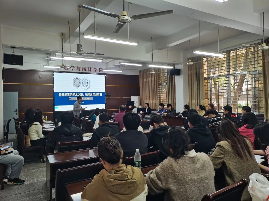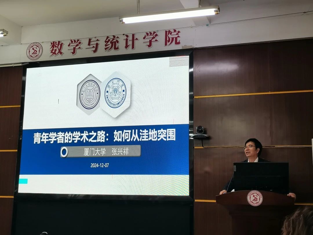 88级校友,厦门大学张兴祥教授返校在砺志楼114为数统师生开展题为《青年学者的学术之路:如何从洼地突围》的学术讲座。此次讲座由统计系主任李气芳老师主持。
