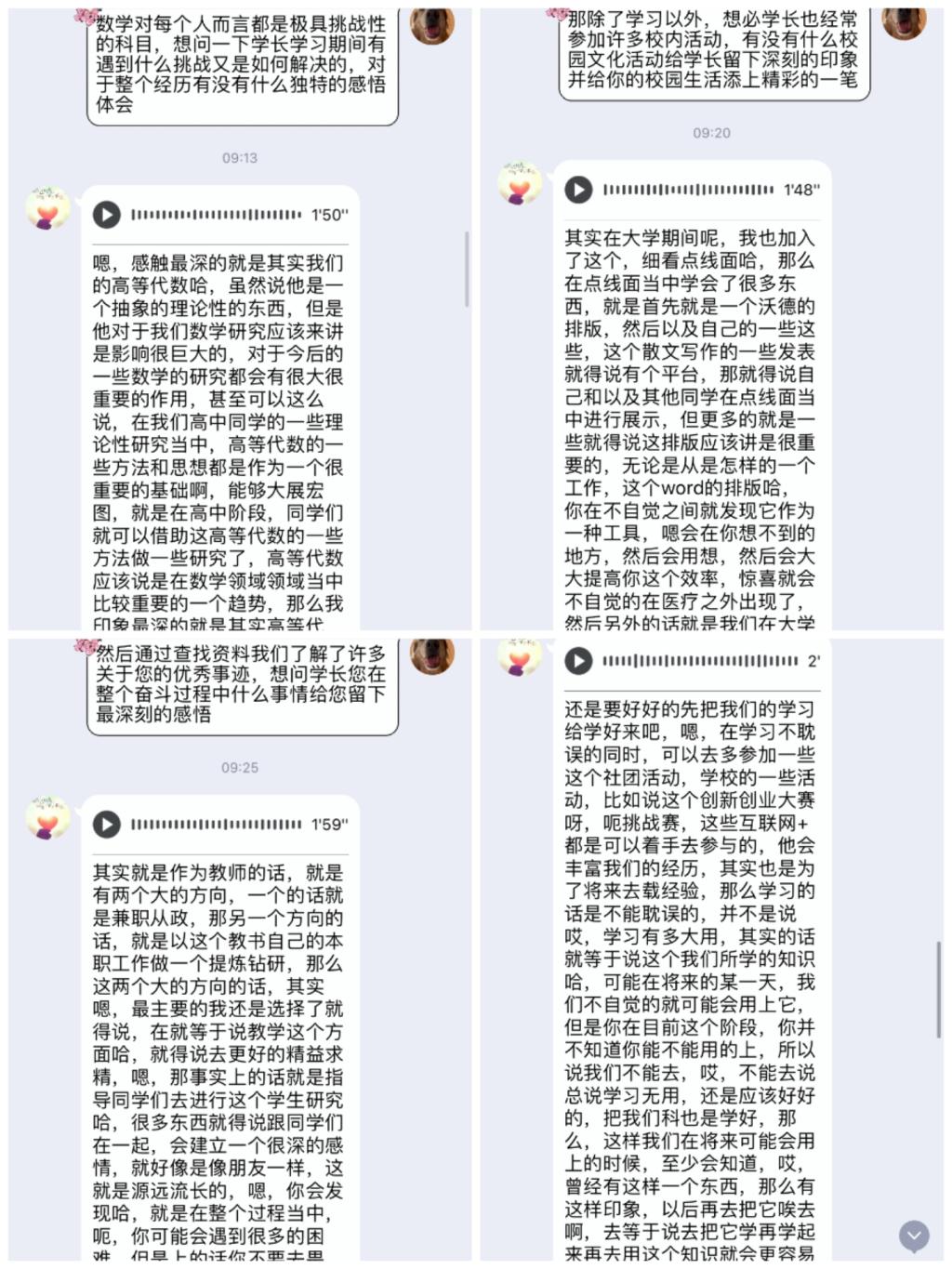 除了在学习领域展风采,在校园文化活动中学长也给自己的大学校园生活添上精彩的一笔。在老师共同的帮助下,数统学院成立了由老师直接指导的数学建模协会。学长回忆在这个协会中学到了许多数学研究的工具,这些工具在解决实际问题或者作为学术研究使用都具有价值性。学长鼓励我们要多学一些技能,技多不压身,这些经历以及学习的技能与经验,总是在不经意间,在我们意想不到的地方,给我们意想不到的惊喜。