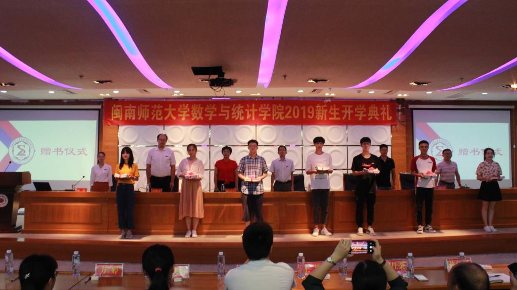 开学典礼上学院还举行“我与专业有约”班级图书角赠书仪式,学院党政领导分别为7个新生班级赠送了《数学万花筒》、《极简统计》等数学类专业书籍,为新生送去学院的“开学大礼”,这份特殊的礼物寄托学院对新生的美好期望,希望他们在新的大学中怀揣知识与理想,扬帆起航。
